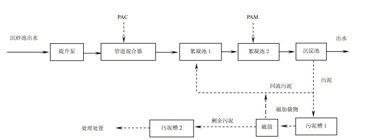 用新工藝,加入磁粉加速沉淀,節(jié)約污水處理時間,整合設(shè)備占地面積小,運(yùn)營成本低。